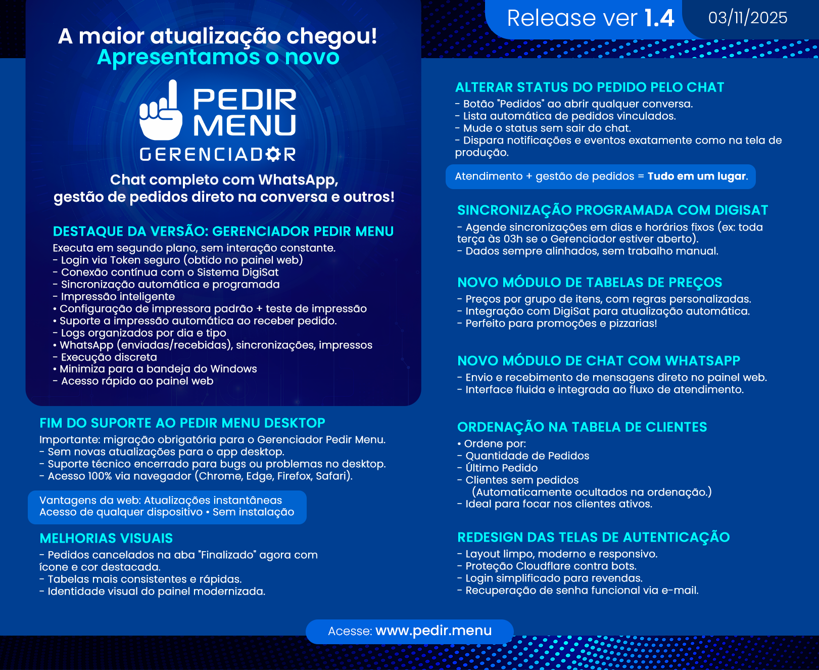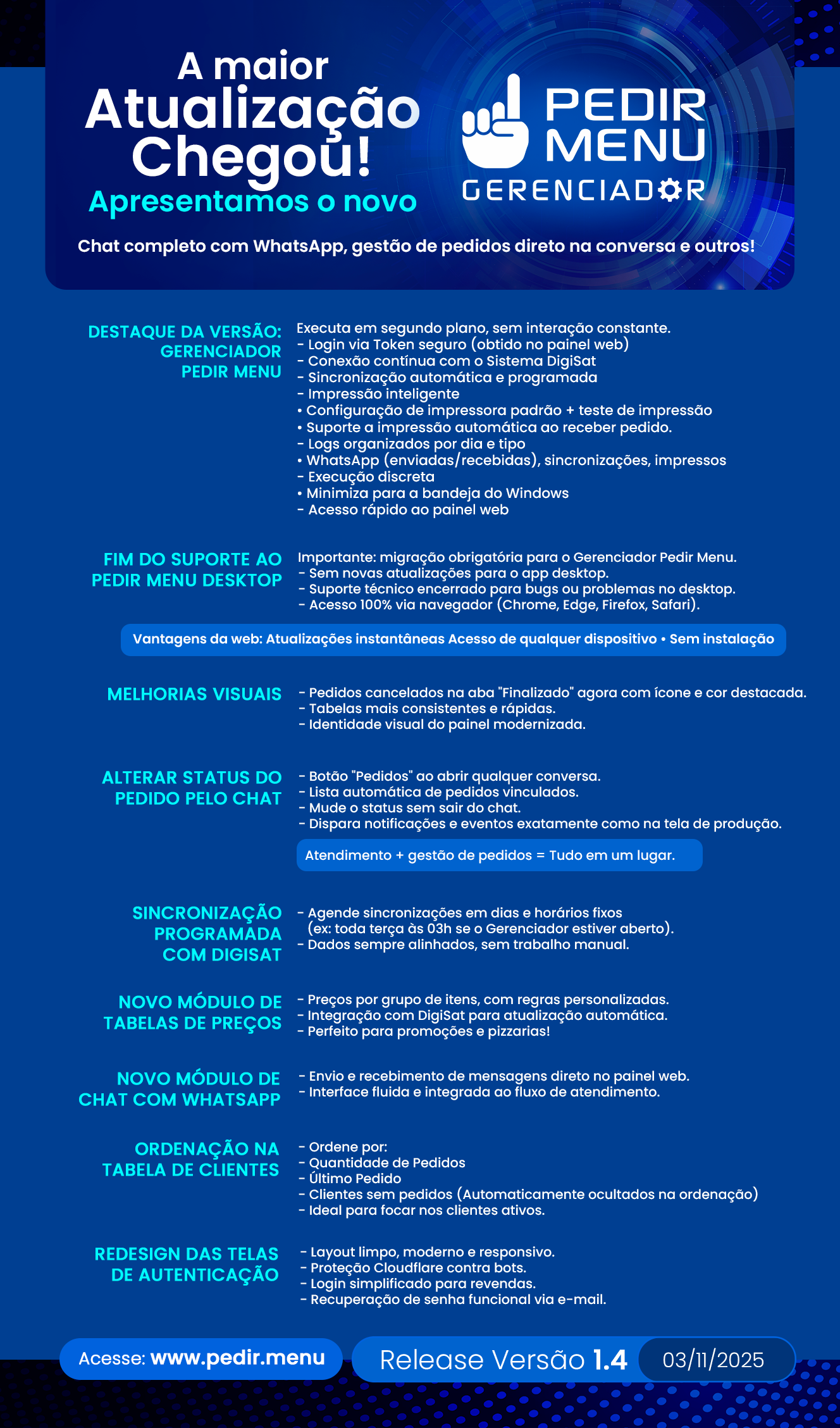 Confira aqui as últimas alterações feitas no sistema juntamente com as novidades da nova versão:
